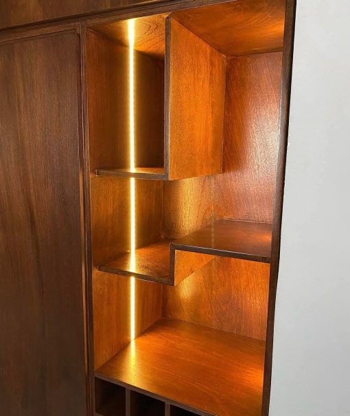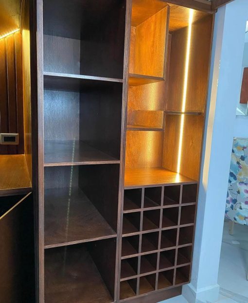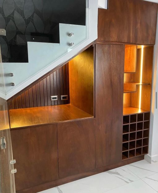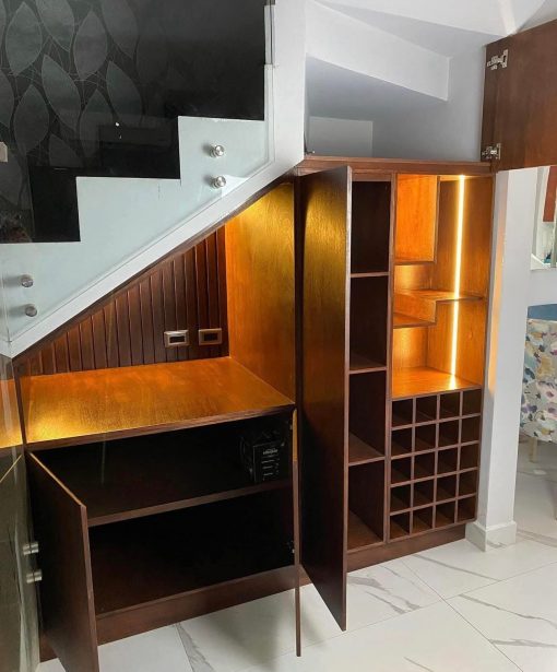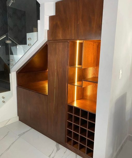 Mueble decorativo bajo escalera con iluminación led.